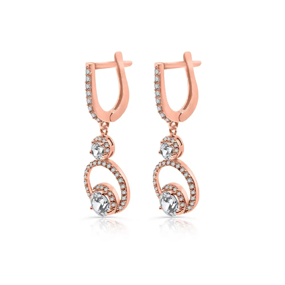 עגילי החישוק הכפול 14 קארט משובץ בזרקונים
