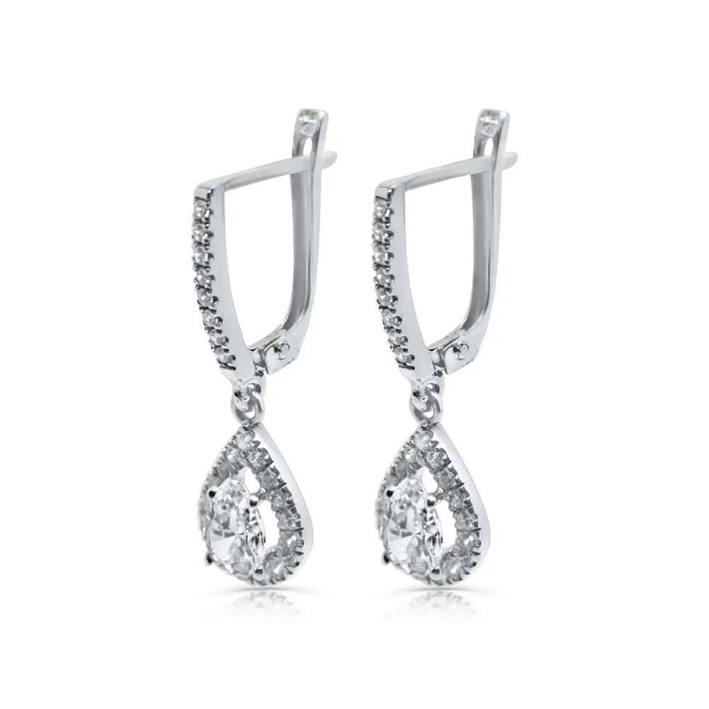 עגילי טיפה 14 קארט משובצים בזרקונים