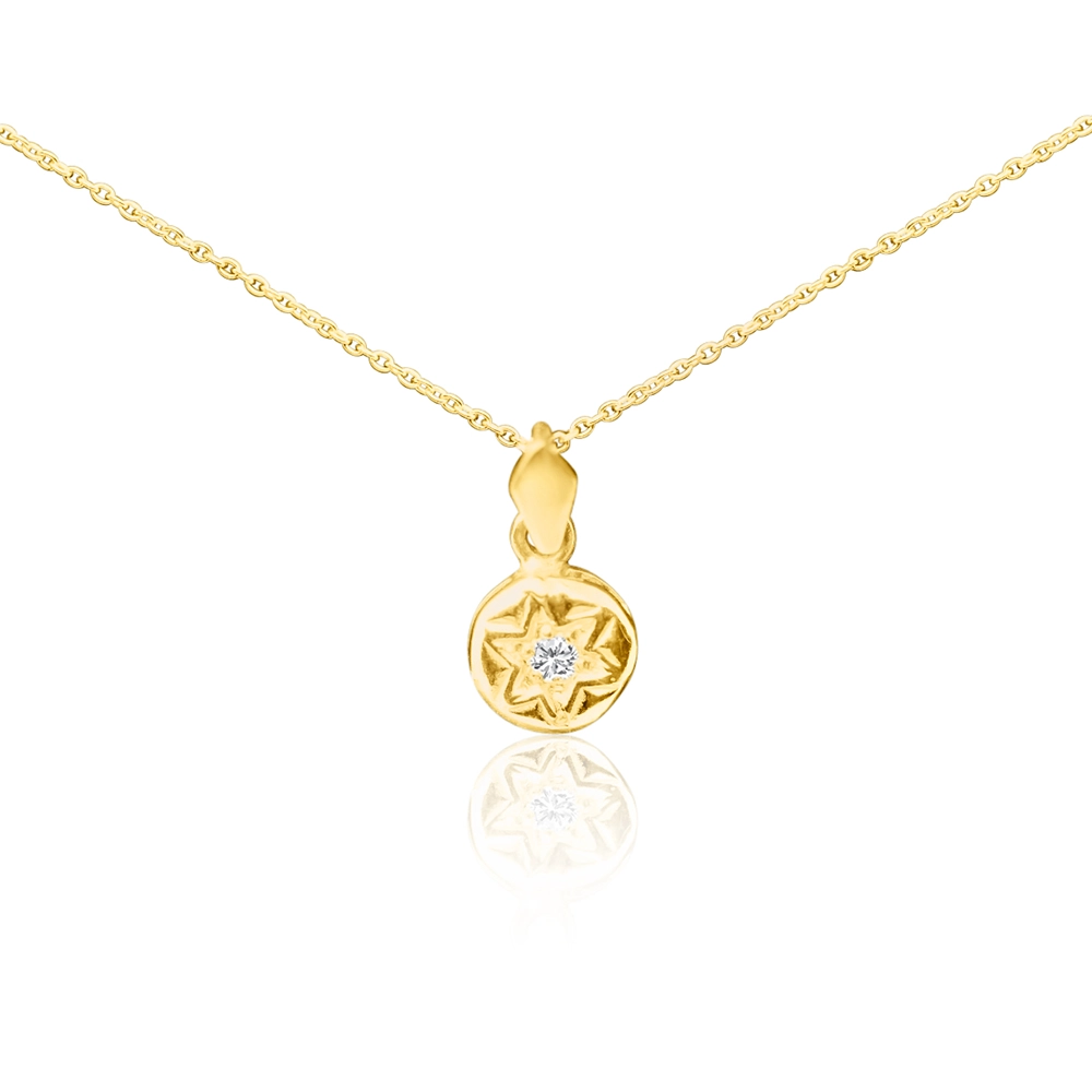 שרשרת זהב 14 קארט עם יהלום בגודל 0.10 CT